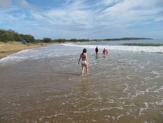 Weiter suedlich in Agnes Water war vermutlich die einzigste Stelle fuer uns, wo wir unbedenklich, ohne Netze gesichert im Meer baden konnten.