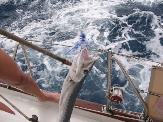 Heute kommt die Angel nicht zur Ruhe: Kurz vor Culebra beißen nacheinander drei Barrakudas und zum Schluss eine Makrele. Schluss deswegen, weil Sigi ein Machtwort spricht: Wohin mit so viel Fisch bei unseren beschränkten Kühlmöglichkeiten?
