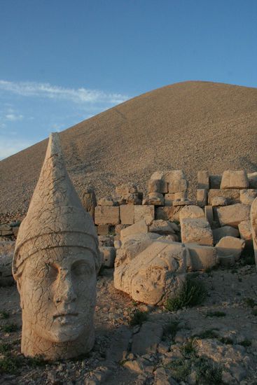 Nemrut Dag ist ein Berg mit 2150m, der recht windumtost ist, aber vorallem den grössten Grabhügel der Welt auf sich trägt. Riesige Köpfe aus Stein bewachen ihn. "Götterverehrung und Selbstvergötterung kulminieren in dieser einzigartigen Gedenkstätte, die der kommagenische König Antiochos 1. für sich selbst geschaffen hat" (Zitat: Türkei, Bussmann und Tröger, Michael Müller Verlag 2009). Alles weitere findet ihr bestimmt bei Wikipedia, ich kann leider nicht zu jeder Station unserer Reise alles erklären, aber ich versuche es regelmässig zu tun.
