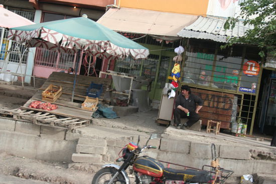Der Vulkan Erciyes mit seiner Schneekuppe zog uns an und wir wären gerne ein Stück hinauf gefahren und hätten dort gerne übernachtet, aber das Wetter versprach schlechte Sicht und Regen. Wir fuhren weiter und hielten um nochmals ins Internet zu gehen in einem Ort und sahen dem immer untouristischeren und für uns recht orientalischen Treiben zu.