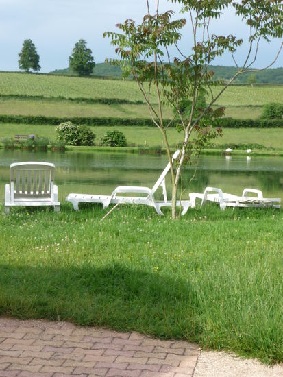 Trotzdem, für eine Nacht würde es gehen und jetzt knurrte erst mal der Magen. Also ab ins Restaurant: dort saßen wir in einer lauschigen Laube im Freien, den Blick auf den Badesee und den kleinen, überdachten Pool, in dem noch Kinder planschten. Einen Pastis als Aperetif, dann ganz unfranzösisch eine super leckere Steinofen-Pizza mit Rotwein aus dem Burgund. Savoir Vivre - wir sind in Frankreich
