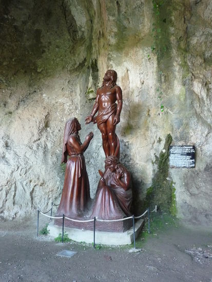 Einen ersten Stopp legten wir an der Ermitage de St. Antoine ein. Auf einem Parkplatz am Rand der Schlucht stellten wir unser Auto ab und machten uns zu Fuß an den Abstieg hinunter in die Einsiedelei. Hier befindet sich eine Grotte sowie eine kleine Kapelle, in der an diesem Tag gerade ein Gottesdienst gefeiert wurde. Die Kapelle wurde nach einem "Wunder" im Jahre 1782 gebaut. Durch dieses Wunder wurden viele Einwohner von Saint Paul de Fenouillet von einer Krankheit durch den Schutz von Saint-Antoine gerettet. Seit diesem Tag, treibt eine Platane umgeben von Steinen fast ohne Wasser. Sie ist heute stark gewachsen und spendet den Besuchern Schatten.