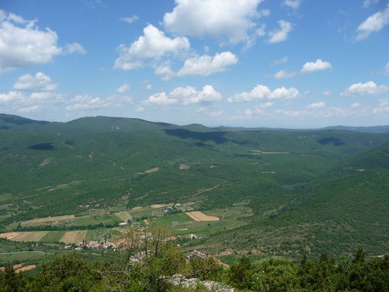 Ich finde es hier oben irgendwie mystisch. Wenn der Wind durch die Ruinen pfeift, die vorbeiziehenden Wolken bizarre Schatten auf die Hügel der Umgebung werfen, die Stille nur durch die Rufe majestätisch vorbei segelnder Greifvögel unterbrochen wird, die Dörfer und Straßen zu Füßen der Burg wie Spielzeug wirken, dann kommt eine eigenartige Stimmung auf. Man glaubt den Geist der Katharer zu spüren und dennoch breitet sich eine innere Ruhe aus, wenn der Blick hinaus in die Ferne schweifen kann. Irgendwie von der Welt dort unten entrückt, dem Himmel ein bisschen näher. Zumal wir an diesem Tag fast alleine hier oben sind und nur wenige Besucher diese Atmosphäre stören.
