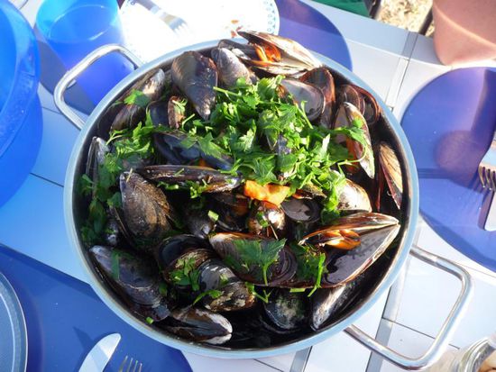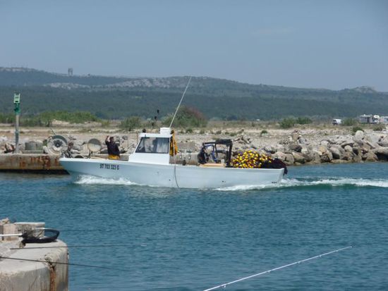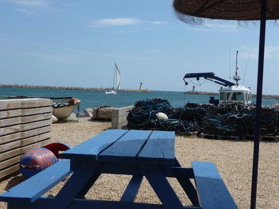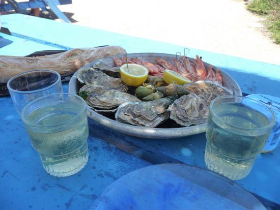 Das bevorzugte Ausflugsziel für unsere Radtouren war Gruissan-Plage und die dortige Base Conchylicole - eine Muschel- und Austernzuchtstation mit angeschlossener Verkostung. Eine Platte mit verschiedenen Meeresfrüchten, dazu das mitgebrachte Baguette und ein Glas Wein - alles verzehrt mit Blick auf die Hafeneinfahrt von Gruissan bei schönstem Sonnenschein - Herz, was willst du mehr.