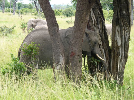 6 Uhr ging es los zur Frühsafari. Unterwegs hatten wir eine Reifenpanne. Heute bekammen wir einen Leoparden zu sehen, er war zwar recht weit weg aber was solls .Nach der Safari gab es ein großes Frühstück mit Ei Speck und Kartoffeln. Ich glaub das war Bestechung da wir anschließend packen mußten es ging wieder zurück ins Camp von gestern .Razz hatte Angst das wir nicht mehr durch kommen,wegen dem Regen. Schade.