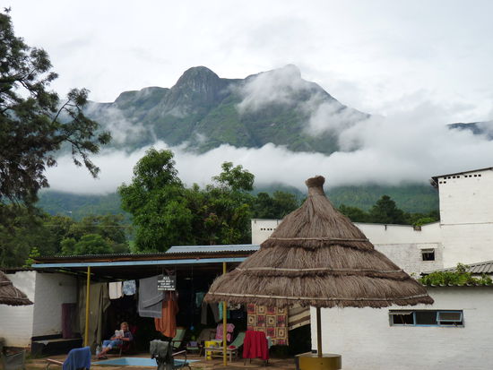 20.2 Beim wecken hat der starke Regen aufgehört es nieselte nur noch. Also wieder mal die nassen schweren Zelte abbauen und einpacken. Der Truck hing voller naßer Wäsche. Razz haßte das wenn alles voll hing,aber da muß er durch. Unser Ziel heute waren die Mulanje-Berge südlich von Blantyre. Der Mout Mulanje ist 3002 Meter hoch. Das Wetter wurde besser. Auf den Straßen war viel los. Unterwegs hing wieder ein LKW fest, der schon seit 4 Stunden versucht wieder frei zu kommen. Hier gibt es sehr viele Radfahrer,da sitzen oft bis zu 4 Leute drauf. Am Mittag müssen wir wieder einkaufen. In diesem Laden gibt es alles, aber verdammt teuer. Der Weg führte uns an den Teeplantagen vorbei, alles Tee soweit man sehen kann. Am Wegrand standen wunderschöne Agaven. Dies mal bauten wir unsere Zelte auf einem Golfplatz auf,natürlich wieder mit Pool. Da wir hier allein waren ließen wir unsere Sachen in der Dusche auf den Bänken liegen,da war es wenigstens trocken.Im Hintergrund unseres Zeltplatzes war ein wunderschönes Bergmassiv. Es hingen aber viele Wolken am Berg. Morgen soll es eine Bergtour geben. Am Abend hat Razz die Tour abgesagt,es sei zu gefährlich.