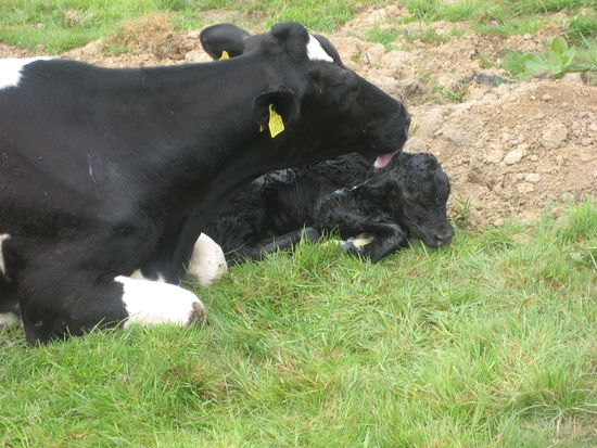 Gestern Nachmittag ist ein weiteres Kälbchen zur Welt gekommen, und heute erwarten wir auch noch eins. Wir durften vorhin unseren Arm in die Kuh reinstecken - wo es, laut John, "comfortably warm" ist - und konnten die Beine und die Nase des Kälbchens fühlen.