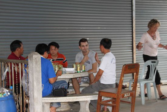 Der erste Tag in Laos begann perfekt - es war 1. Mai - also auch hier Tag der Arbeit. Die Grenzbeamten waren alle am Biertrinken und sehr gut aufgelegt, sodass das Ausfüllen des Visums sowie die Immigration äußerst lustig waren. Schließlich endete das Ganze darin, dass ich und andere Reisende mit den Grenzbeamten, die vorher noch unsere Pässe gestempelt hatten, gemeinsam Bier tranken. Wohl der beste Grenzübertritt den es gibt!