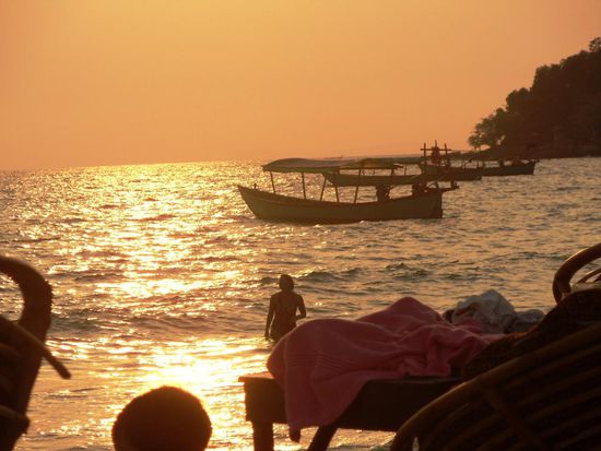 Ein weiter weniger schoenes Thema - es kommt immer darauf an, von welcher Seite aus man es sieht - sind die vielen aelteren, westlichen Maenner mit meist dickem Bauch und wenig Haaren auf dem Kopf, welche mit jungen, einheimischen Maedchen Arm in Arm aus dem Hotelzimmer kommen oder am Strand spazieren gehen. Ich glaube, es ist in Kambodscha noch nicht so schlimm wie in Thailand, aber es ist nicht wirklich ein sehr schoenes Bild. Vielleicht bekommt ja ein Maedchen die Chance, mit einem westlichen Mann von hier auszureisen und im Westen zu Leben. Nur, ob unser Leben im Westen ein besseres Leben ist, dass ist ein anderes Thema. Ich persoenlich glaube, trotz allen Schwierigkeiten und Problemen welche die Menschen hier haben, sind die meisten doch zufrieden und gluecklich. Auf jeden Fall koennen sehr viele noch herzlich lachen, was bei uns nicht mehr selbstverstaendlich ist.