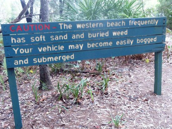 Das Baden im Meer wird hier nicht so empfohlen, wegen der starken Strömung, Haien und den vielen Seeschlangen. Dafür kann man in einem der 42 Süsswasserseen, im Inselinnern, problemlos baden. Die Insel erreicht man per Autofähre. Es sind nur 4x4 und Off Road Fahrzeuge zugelassen. Mit denen kann man auf sandigen Pisten, abenteuerlichen Strassen und langen Stränden fahren.