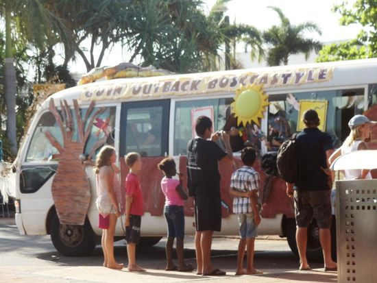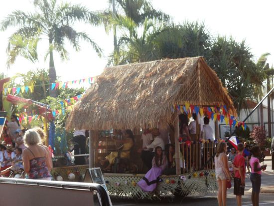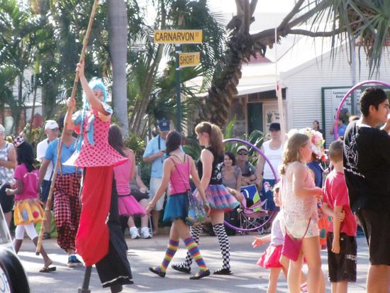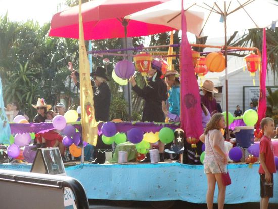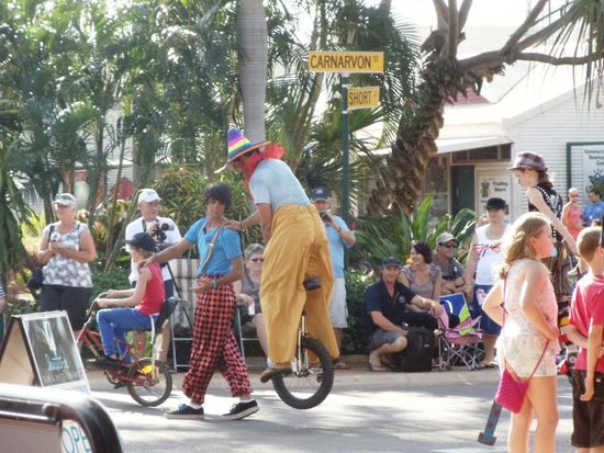 "Shinju Matsuri bedeutet Festival der Perle und ist eine Gelegenheit, die vielen verschiedenen Kulturen, einschliesslich der lokalen Aborigines, anzuerkennen, da im späten achtzehnten Jahrhundert Japaner, Chinesen, Malaysier, Philippiner und Europäer nach Broome strömten um den Wohlstand der Perlen zu erleben und natürlich zu erwerben. Shinju Matsuri soll dazu beitragen, den Geist und die Energie, welche noch heute in dieser exotischen Stadt vorhanden ist, zu zelebrieren". Auf jeden Fall geniesse ich diesen "Umzug", welcher gut eine halbe Stunde dauert. Während der Parade gesellt sich noch Erica zu uns mit ihrer nagelneuen Fotoausrüstung. Später fahren Karl und ich nach Hause zu Broome Motor's und wir schwatzen noch bis spät in den Abend hinein. Seine Frau Carolyn kommt nach ihrem Feierabend nach Hause und setzt sich auch noch zu uns. Eigentlich wollte Karl ein Barbie machen, aber nach den Bierchen und dem vielen Schwatzen mag er nicht mehr und Carolyn geht zum Take Away und holt Fish'n chips. So geht ein super gemütlicher und interessanter Samstag zu Ende. Mal schauen ob morgen der Wind nicht mehr so stark ist und ich an den Strand gehen kann.