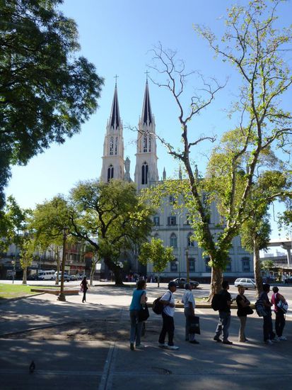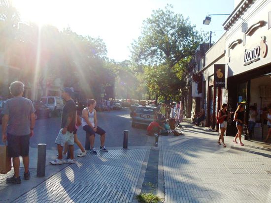 welches man auch Microcentro oder einfach Centro nennt. Zu Fuss brauche ich knapp eine Stunde oder mit der Subte bin ich in zehn Minuten dort. Eine Fahrt mit der Subte kostet 2.50 ARS, was umgerechnet ungefähr fünfzig Rappen sind. Hier gefällt mir besonders die Strasse Reconquista, mit seinen vielen Cafés, Pubs und Restaurants wo man draussen sitzen kann. Die Konkurrenz ist hier sehr gross und daher lohnt es sich die Angebote anzuschauen. Das billigste Angebot sah ich hier; 16 Pesos (Fr. 3.50) für einen Liter Bier. Das ist doch recht günstig für eine so belebte und beliebte Gegend. Die anderen sehr belebten Strassen hier sind Florida, Lavalle und San Martin. Hier kommt man fast nicht durch, da es so viele Leute hat. Hier hat es sehr viele Kleiderläden und Restaurants. Es stehen sehr viele Leute vor den Restaurants auf der Strasse und wollen Dich in ihre Restaurants locken oder sogar "hineinziehen". Jeder verspricht einem das beste und billigste Essen. Von hier gelangt man innerhalb von wenigen Minuten nach Recoleta oder Puerto Madero. In