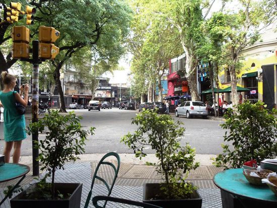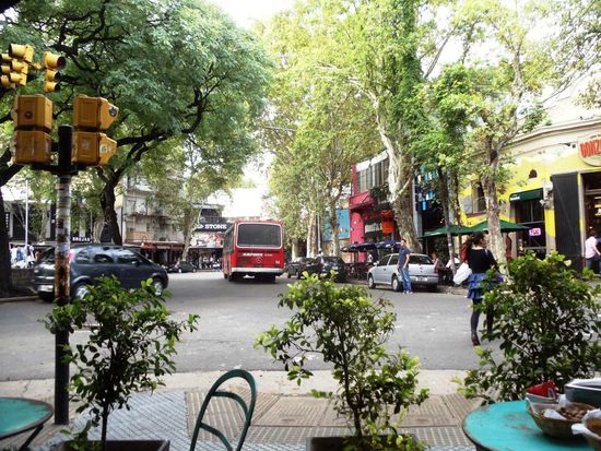 Heute steht ein wenig Stadtbesichtigung auf dem Programm. Ich möchte Ronny, Marc und Christoph die bekannteren Stadtteile zeigen, in der Zeit sie hier sind. Heute steht San Telmo am Morgen und Palermo am Nachmittag auf dem Programm. Bei Regen gehen die drei am Morgen alleine nach San Telmo und Ronny schreibt mir, dass sie nicht so begeistert sind. Ich denke, dass es ihnen bei schönem Wetter besser gefallen würde. Wir vereinbaren, dass wir uns um halb zwei bei der Subte Station Plaza Italia treffen. Ich warte fast zwei Stunden, aber die Jungs kommen nicht. Das Problem bei Skype ist, dass beide gleichzeitig online sein müssen um einander zu schreiben. Wenn ich online bin und schreibe, kann das der Ronny nicht sehen, ausser eben, wir sind gleichzeitig online und das klappt momentan irgendwie nicht. Ich hoffe, dass sich die drei nicht verirrt haben und beschliesse nach Palermo auf den Plaza Cortazar - auch Plaza Serrano genannt - zu gehen. Seit dem Nachmittag scheint die Sonne wieder und ich setze mich draussen in der Café Bar "sans" hin. Erstens ist das eine wirklich absolut coole Bar mit sehr guter Musik und zweitens gibt es hier WiFi umsonst. Und siehe da; um fünf Uhr können Ronny und ich wieder einander schreiben und er kommt mit Marc ins sans. Christoph ist zurück ins Hotel gegangen und wir drei geniessen den späten Nachmittag mit Bier, Wein, Reden und natürlich Leute beobachten. Wir haben sehr viel Spass hier im sans und treffen uns später mit Christoph im bekannten Restaurant La cabrera. Es hat sehr viele Leute hier die anstehen und wir müssen auch 45 Minuten warten. Wollen wir nicht und so setzen wir uns ins nächste Restaurant und werden ein wenig enttäuscht. Macht nix; war trotzdem wieder sauglatt und nach dem Essen fahren Ronny, Marc und Christoph mit dem Taxi nach Hause. Ich mache mich zu Fuss auf den Heimweg und komme dabei an einer lustigen Bar vorbei wo viele lustige Leute draussen sitzen. Nach diesem Schlummerbecher geht's dann aber wirklich auch nach Hause für mich.
