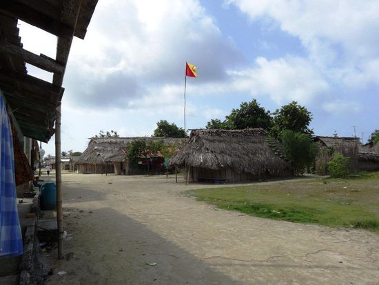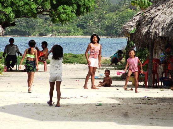 Morgens um sechs Uhr werde ich durch einen lauten Knall geweckt. Oje, da ist etwas mit dem Motor geschehen. Jeff sieht im Motorraum nach und sieht nicht glücklich aus. Fast gleichzeitig beginnt es auch noch stark zu regnen. Wir haben zum Glück nur noch vier Stunden bis zur Insel und so segeln wir jetzt - endlich - ohne Motor. Nach einer Stunde ist der Regen vorbei und wir freuen uns alle, nach über 37 Stunden von Bord zu gehen. Wir haben jedoch praktisch keinen Wind und segeln gegen die Strömung. Bis zum geplanten Anlegeort müssen wir noch über zwölf Stunden segeln. Das Segelboot "Stahlratte" hat unseren Notruf erhalten und schleppt uns bis vor eine Insel. Die Stahlratte segelt unter Deutscher Flagge und der Kapitän kommt aus Bremen. Die Stahlratte war auf dem Rückweg von El Porvenir nach Cartagena und hat fast dreissig Passagiere an Bord. Nach ungefähr fünf Stunden abschleppen, ankern wir bei den Islas Diabolo. Der angeheuerte Matrose verlässt uns und segelt mit der Stahlratte wieder zurück. Das ist eine recht teure Angelegenheit für Jeff und Rachel. Das Abschleppen kostet eintausend fünfhundert Dollar und für den Matrosen haben sie den Rückflug gebucht. Wie lange es dann geht, bis das benötigte Ersatzteil eintrifft, wissen die Beiden noch nicht.