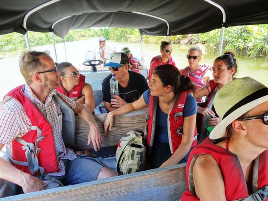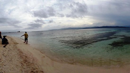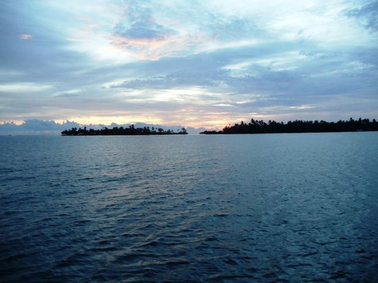 Nach dem Frühstück werden wir mit einem Boot auf eine kleine, schöne Insel gebracht. Wir verbringen den Tag am Strand mit Volleyball, Fussball, Lesen und natürlich faul rumliegen. Am Abend regnet es schon wieder und wir spielen alle zusammen an Deck - dicht aneinander gepfercht - ein lustiges Würfelspiel. Und es wird wieder nichts mit dem Schlafen an Deck...leider.