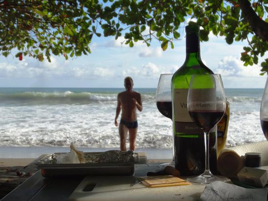 Die Langusten sind super, leider beginnt es am Abend zu regnen und der Platz an und unter Deck ist noch knapper als vorher. Da ich die Nacht durch die meiste Zeit an Deck schlafe, wird das sicher wieder eine längere Nacht ohne Schlaf werden. An Deck ist alles nass und somit muss ich mich irgendwie in mein kleines, heisses Bettchen quälen.