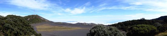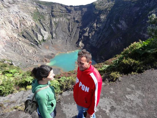 Morgens um halb zwei werde ich durch Klopfen an meine Fensterscheibe von einem Sicherheitsbeamten geweckt. Ich parke auf einem Privatparkplatz und soll wegfahren. Nach langem Verhandeln kommt dann sein Vorgesetzter und erlaubt mir für eine Nacht zu bleiben. Ich habe doch soooo tief und fest geschlafen. Johann und Fabian schlafen so fest, dass sie die Klopfzeichen und die Diskussionen gar nicht mitbekommen. Um halb sieben Uhr stehen wir auf und wollen in den Mc Donalds, welcher um sieben Uhr öffnet, einen Morgenkaffee trinken gehen. Wir warten bis um vertel nach sieben und die Angestellten machen uns per Handzeichen klar, dass sie erst in einer Stunde öffnen. Die Türe bleibt verschlossen. Das Aha-Erlebnis kommt eine Minute später, als wir den Sicherheitsbeamten nach der Zeit fragen. Es ist erst viertel nach sechs. Haben wir doch total vergessen, dass es eine Stunde Zeitverschiebung von Panama nach Costa Rica gibt. Ich fahre an die nächste Tankstelle und muss am Reifen hinten rechts, dort, wo immer noch eine Schraube festsitzt, recht viel Luft reinlassen. Danach fahren wir bei schönem Wetter mit wunderbarer Aussicht zum Vulkan Irazú (abgeleitet vom indianischen Namen Iztarú = "zitternder und donnernder Berg"), der mit seinen 3432 m der höchste Vulkan von Costa Rica ist. Der rund um den Vulkan angelegte 2300 ha große Nationalpark wurde bereits 1955 gegründet und ist damit der älteste des Landes. Der letzte Ausbruch fand 1994 an der Nordwand des Kraters statt und noch heute zeugen Fumarolen, kleinere Lavaströme und leichte Beben von der erhöhten Aktivität des Vulkans. Durch den starken Wind in dieser Höhe können plötzliche Temperaturschwankungen von -3°C bis +17°C auftreten. Wir haben jedoch Glück und geniessen den Vulkan und die Aussicht bei sehr schönem Wetter. Regen soll erst wieder am späten Nachmittag kommen.