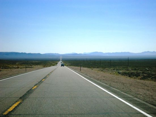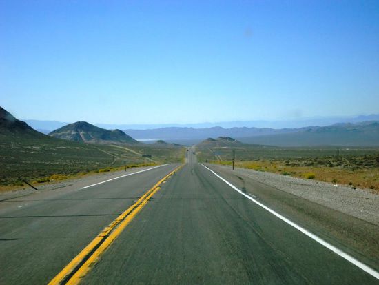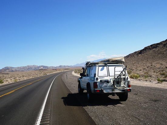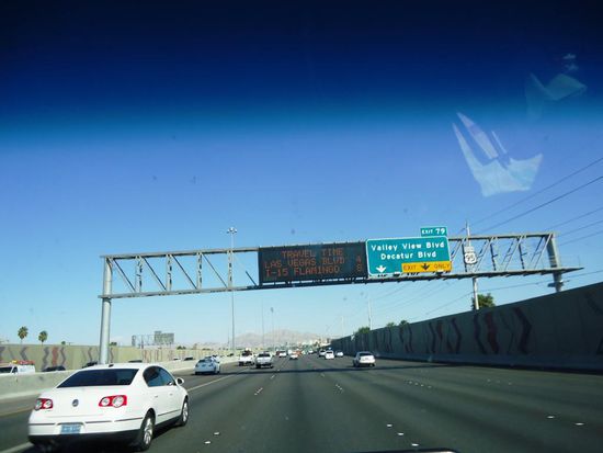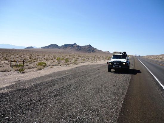 Sehr gut geschlafen und mit der Morgensonne geht's los durch die Wüste Nevadas auf der Highway 95. Mir gefällt auch diese Wüstenlandschaft und geniesse das Fahren und natürlich die Raststätten mitten in der Wüste. Bis nach Las Vegas sind es siebenhundertfünfzig Kilometer. Ich werde natürlich von allen Fahrzeugen überholt, da ich nur zwischen fünfzig und fünfundfünfzig Meilen pro Stunde fahre - also so zwischen achtzig und fünfundachtzig Stundenkilometer. Die Höchstgeschwindigkeit ist siebzig oder manchmal fünfundsiebzig Meilen die Stunde. Ich fahre knapp über der Minimalgeschwindigkeit von fünfzig Meilen die Stunde. Für meinen Dieselverbrauch optimal, jedoch denke ich, dass die überholenden Lastwagen und Autos sich ein wenig über dieses schleichende Auto wundern. Am späten Nachmittag komme ich in Las Vegas an und frage im Motel nach Johanna und Fabian. Aber der Besitzer will mir keine Auskunft über seine Gäste geben und seine Internetverbindung kann ich leider auch nicht benutzen, da er damit momentan ein Problem hat. Er informiert jedoch ein anderes Motel und organisiert, dass ich dort die Internetverbindung nutzen kann. Schade, Fabian und Johanna sind bereits am Morgen weiter in Richtung Hoover Damm und Grand Canyon National Park. Sieht so aus, dass es doch nichts mehr wird mit einem Wiedersehen.