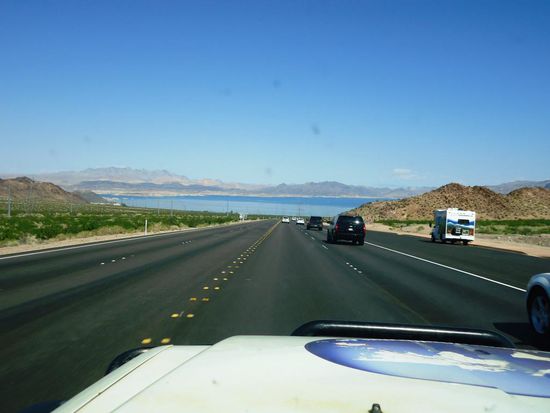 Am Nachmittag fahre ich dann los in Richtung Hoover Damm, welcher sich auf der Grenze zwischen den US-Bundesstaaten Nevada und Arizona im Black Canyon befindet. Ihr Absperrbauwerk staut den Colorado, der hier die Grenze zwischen Arizona und Nevada bildet, zum Lake Mead auf. Der aufgestaute See weist eine Länge von rund 170 Kilometern auf. Mit seinem Speicherinhalt von rund 35 Milliarden Kubikmetern ist er der größte Stausee der USA. Der Hauptzweck der Talsperre ist die kontrollierte Wasserabgabe in Arizona, Nevada und Kalifornien. Vor dem Bau beeinträchtigten regelmäßige Überschwemmungen des Colorado sowie Dürreperioden das Leben der Siedler in den Südweststaaten, insbesondere bei der Landwirtschaft. Ein weiterer Zweck der Talsperre ist die Gewinnung elektrischer Energie. Durch den Verkauf von Strom refinanzierte sich das Projekt und trägt die laufenden Wartungskosten selbst.