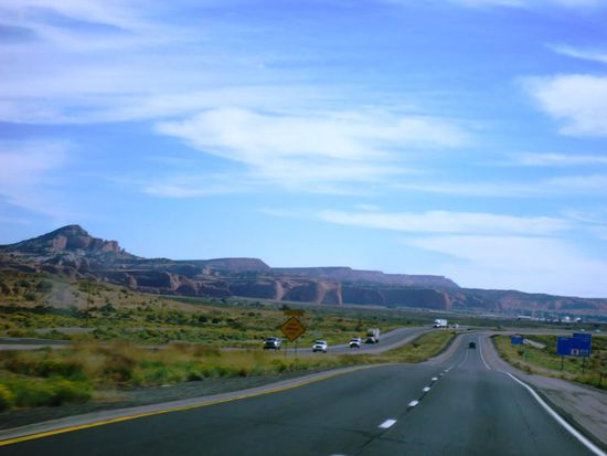 Der heutige Höhepunkt ist die Überquerung der Staatsgrenze von Arizona nach New Mexico. Ich fahre abwechselnd auf der I-40 und der Route 66. Ich geniesse das Fahren und habe meinen Laptop an den Strom und an die Boxen angeschlossen. Mit Musik lässt es sich besser fahren. Ich durchfahre die nächste grössere Stadt, Albuquerque und komme abends bis nach Moriarty. Auch hier esse und übernachte ich auf einer Raststätte. Das waren heute wieder gute sechshundert Kilometer.