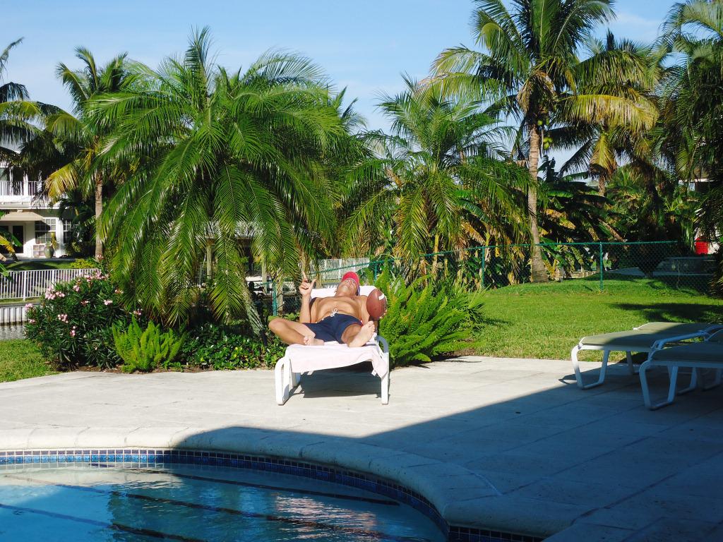 Ich gehe viel joggen und verbringe den Tag durch am Strand oder zu Hause beim Pool mit Lesen.
