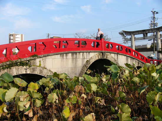 Die Lage am Fluss, ein uralter Shinto-Schrein mit einer roten Bogenbrücke in direkter Nachbarschaft zum Ryokan - so stelle ich mir Japan vor. Die Hausherrin, eine Koreanerin, findet durch ihre englischen Sprachkenntnisse und ihre erfrischende Art einen schnellen Zugang zum Gast. Das Abendessen wird uns auch hier von einer lieben Japanerin auf dem Zimmer serviert; auch hier nehmen die Speisen kein Ende. Es scheint, als ob endlos aufgetischt wird. Und bei jeder Speise, die sie uns ins Zimmer bringt, verbeugt sie sich auf Knien vor uns. Sie freut sich, dass ich etwas Japanisch spreche und ist äußert geduldig mit mir und meinen "Sprachkünsten".