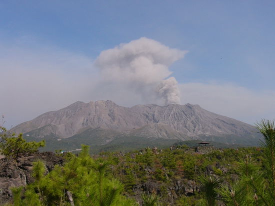 (Der aktive Vulkan Sakurajima (wörtl. "Kirschblüteninsel") liegt in der Präfektur Kagoshima auf Kyushu in Japan.