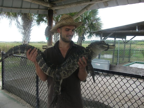 wir machten eine bootstour, mit einem airboat, wie mans von filmen kennt, war saugeil und muss man einfach gemacht haben. der airboat fahrer erzaehlte uns einige interessante dinge ueber die everglades, vorallem dass sie momentan die volle phytonplage haben, soviel leute halten sie als haustiere und setzten sie dann in den suempfen aus.da die phytons nicht wirkliche natuerliche feinde haben und sie bis zu 40 eier legen, kommen sie fast alle durch jetzt ist grad die volle ranglerei zwischen krokodilen und phytons, wer die oberhand der suempfe hat, zumal eine mindestens 4 meter lange phyton ein 2 meter krokodil angegriffen und gefressen hat und die schlange natuerlich dann auch davon starb....ist das unfassbar.