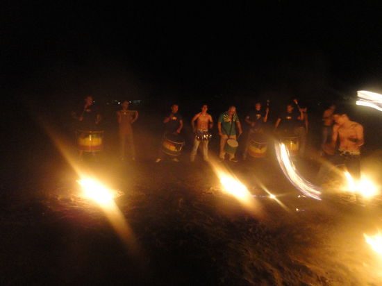 am ersten abend genossen wir gleich eine richtig geile trommel session mit feuerkuenstlern.