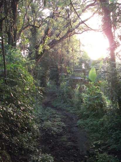 eine kleine wanderung machten wir auf den aktiven vulkan. sind schon um fuenf uhr aufgestanden und wollten auf die aussichtsplattform gehen um den sonnenaufgang zu sehen, doch war der wanderweg nicht mehr so vertrauenswuerdig und wir kehrten um, den sonnenaufgang bekamen wir nebenbei mit, war ja dichter urwald rundherum!