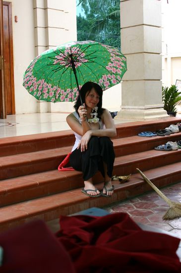 Nach einem kurzen Zwischenstop in Bangkok haben wir uns am Freitag direkt nach Kambodscha aufgemacht! Es war mal wieder eine irre Fahrt! Wir buchten in einem kleinen Reisebüro die Fahrt nach Siem Reap und mir kam das Ganze schon recht merkwürdig vor, als die Tante uns erzählte, dass der Minibus günstiger wäre, als der große Bus...und noch dazu angeblich viel schneller! Aber egal! Wir haben das Ticket genommen und uns auf eine lange Fahrt eingestellt...und genau das war es auch! Bis zur Grenze verlief noch alles recht harmlos, bis auf das ich leider nur ein Passfoto hatte und ich für das Visum jedoch 2 gebraucht hätte...Aber "Gott sei Dank" geht hier ja auch alles mit ein wenig Schmiergeld...und somit habe ich dem Polizisten einfach 2 Euro zugesteckt und damit mir mein Visum erkauft!