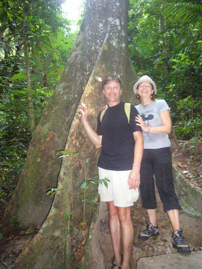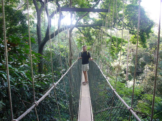 In der ersten Nacht gab es im Hotel ploetzlich kein Wasser mehr, sodass wir morgens nur eine Katzenwaesche mit unserer Wasserflasche machen konnten. Eine Dschungelwanderung, teilweise ueber Seilbruecken in den Baumgipfeln der Urwaldriesen, war aber sehr schoen. Voellig verschwitzt kamen wir in unser Hotel zurueck und es gab immer noch kein Wasser. Das Personal zuckte nur gleichgueltig mit den Schultern, das eine kleine Explosion meinerseits heraufbeschwor. Wir bekamen dann ca. die Haelfte unseres bezahlten Zimmerpreises zurueck und weg waren wir. Die zweite Nacht verbrachten wir dann in einem Luxus-Resort mit Swimingpool.