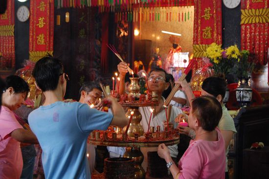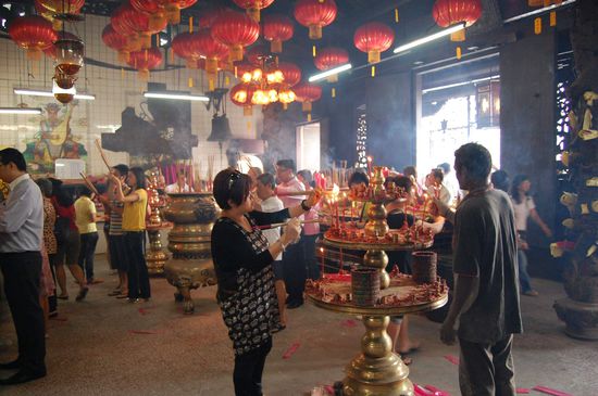 Ein chinesischer Tempel hat dann unsere Aufmerksamkeit erregt, da wir die Rituale nicht kennen, wissen wir leider nicht so richtig,was hier los war, aber es scheint ein höherer Feiertag zu sein.