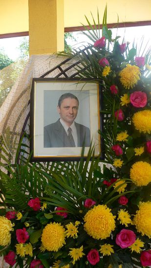 Der "Ober"-Mönch spricht noch einmal ein Gebet für Renato und legt eine aus Papier gefaltete Rose zum Sarg.