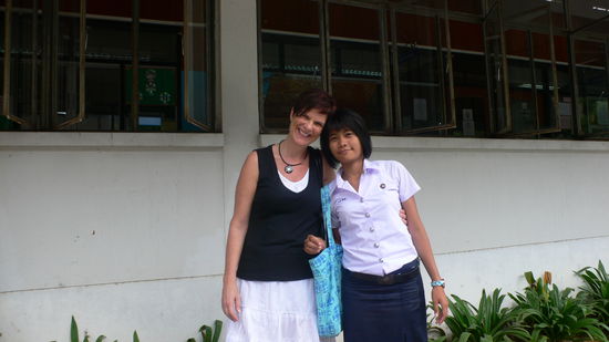 Wie fast immer gehen wr zuerst ins Lehrerzimmer und fragen nach den beiden Mädchen. Suwadii kommt schnell angerannt und umarmt uns beide innig.