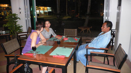 Am Abend von diesem Tag haben wir mit Jaew und Tom abgemacht. Die beiden kamen zu uns ins Hotel. Da wir doch ziemlich müde waren, einigten wir uns darauf, bei uns im Nai Yang Beach Resort zu essen.