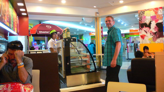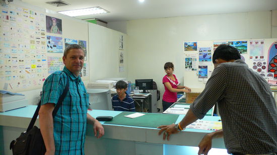 Wir fahren also los Richtung Phuket Town. Da wir genügend Zeit haben, machen wir vor der Veranstaltung noch Halt im Warenhaus Robinson. Dort arbeitet unser Mann für Visitenkarten. Er begrüsst uns herzlich - er kennt uns von früheren Jahren - und freut sich über unsere erneute Bestellung.