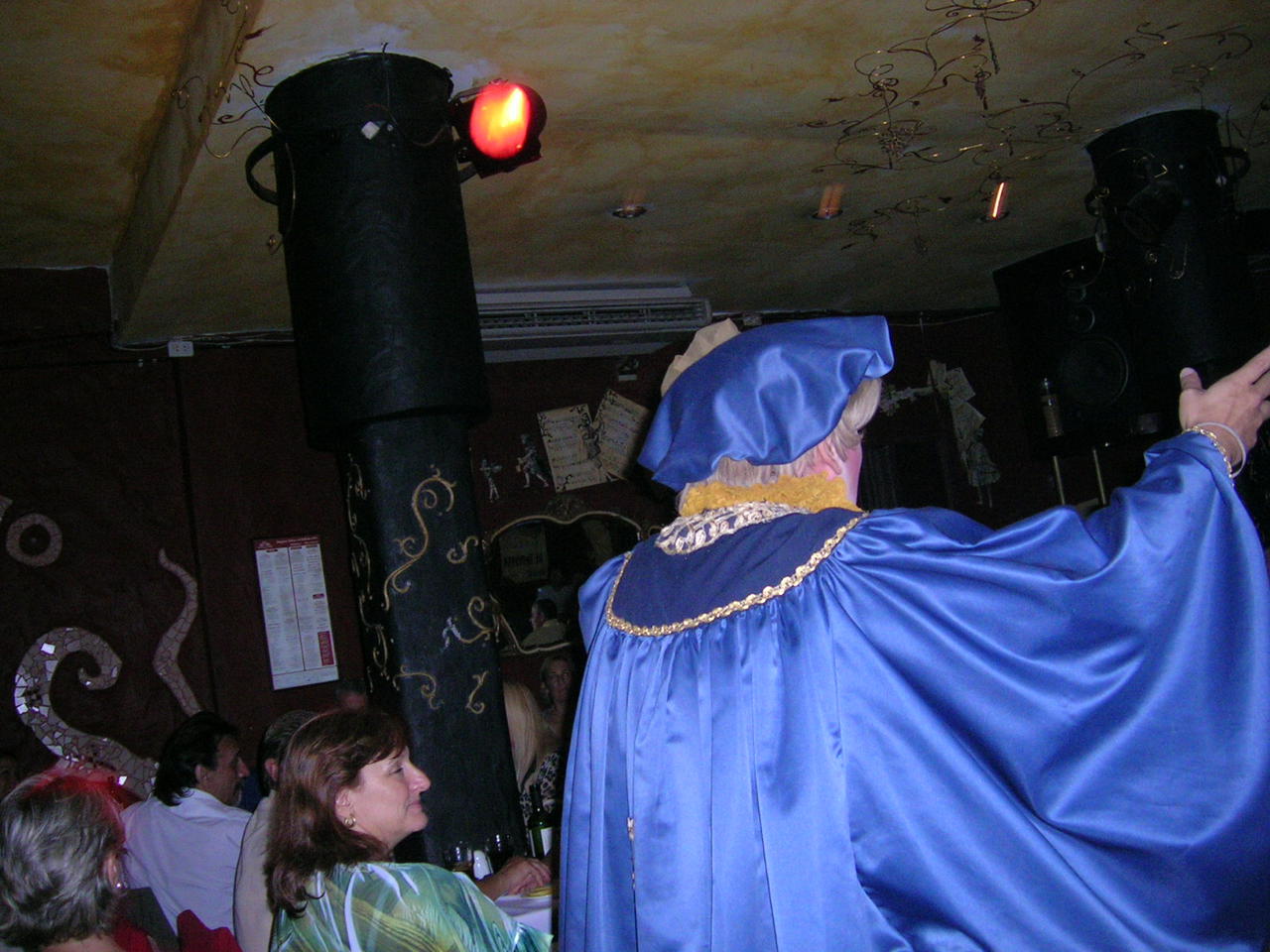 Wir fuhren mit einem Taxi zu einem nichtssagendes Gebäude wo man klingeln musste und die Tür von einem maskierten Menschen geöffnet wurde. Die Spannung stieg, denn als wir in den Raum geführt wurden, lief dort das ganze Personal mit venezianischen Masken und Gewändern und bediente die Gäste. Klassische Musik, gedämpfte Beleuchtung, kleine Tische mit Kerzen drauf. Wir wurden zu unserem Tisch geführt und konnten das Essen bestellen. Alles kam mir sehr phantastisch vor. Das Restaurant heisst Il Positano und das Essen war eigentlich nur mittelmässig, aber was dann kam war hervorragend, ein einmaliges Erlebnis, was leider viel zu kurz war.