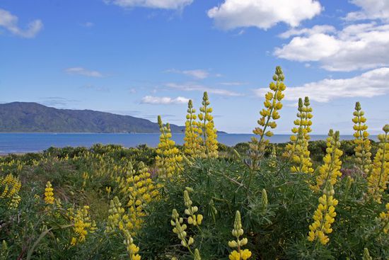 Ich habe schon überlegt, ob ich den Kiwis (Menschen) erzähle, das man aus Holunderblüten ein leckeres Gelee machen kann, denn der blüht gerade. Aber viele Büsche habe ich nicht gesehen, ganz im Gegensatz zum Gingster, der unheimlich massig vertreten ist. Ganze Berghänge sind in gelb getaucht.