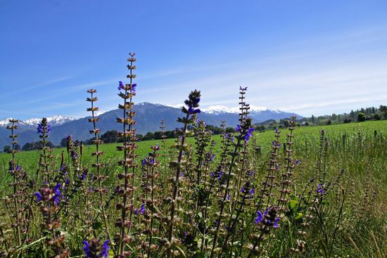Die Strecke führte durch riesengroße Weinanbaugebiete und Farmland, und dann irgendwann ans Meer. Im Hintergrund wurden wir von schneebedeckten Bergen begleitet.