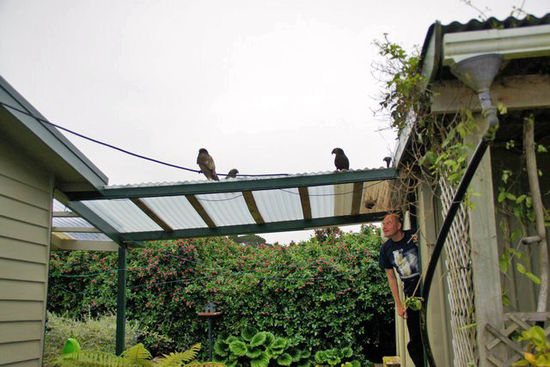 Kakas haben wir ja schon die ganze Zeit um das Haus herum fliegen sehen, aber gegen Abend beehrten uns gleich 4 von ihnen und sie waren schon eher aufdringlich, aber ich hatte aus meiner ersten Begegnung mit ihnen gelernt und so zeigte ich schon Abwehrverhalten, wenn sie begannen auf mich zuzufliegen. Alles ging gut und ich habe etliche Bilder.
