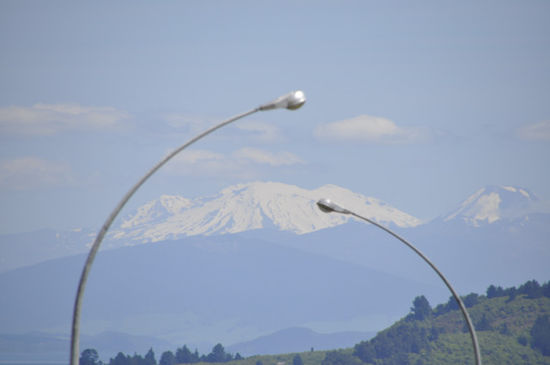 Der Lake Taupo, im Hintergrund sieht man den Tongariro Nationalpark, das sind...