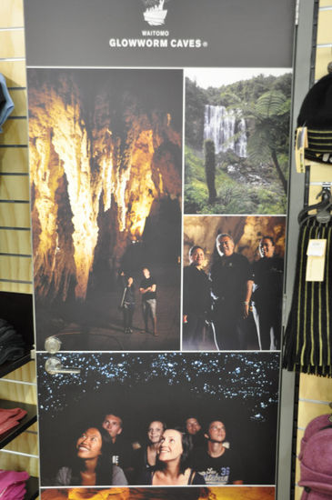 Bei den Waitomo Caves - riesige Kalksteinhöhlen mit tausenden von glowwormes die an der Decke leuchten während man drunter mit dem Boot durchfährt. Die glowwormes sind Larven der Stechmücke, also keine Glühwürmchen wie bei uns!