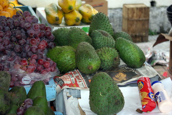 Hier habe ich mit Früchten zum Abendessen eingedeckt.Für ca. 4 Dollars bekamm ich einen Sack voll exotischer Früchte wie....Marakujas,Taxos,Guanabana,Granadilla,Papaya usw.
