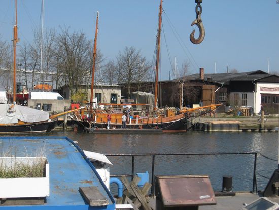 Endlich in Greifswald angekommen ging es dann am Ufer des Ryck in Richtung Eldena. Sehenswert waren die vielen kleinen Werften und alte Segler.