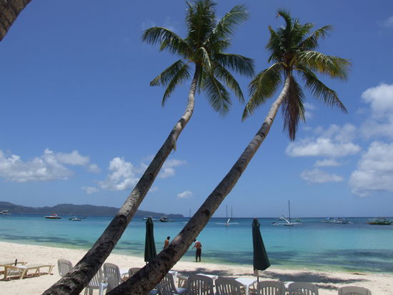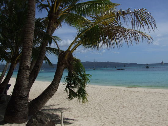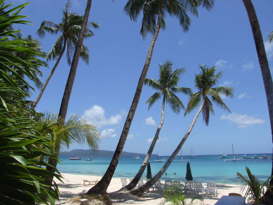 Boracay - die Insel zum Süchtigwerden. Palmen und Palmen und Palmen und Palmen soweit das Auge reicht. Zu den Palmen gibt es einen Puderzucker-weißen Strand, tropische Sonne und glasklares himmelblaues Wasser. Eine absolute Trauminsel der Welt. Selbst die Südsee wird vor Neid verblassen - die ganzen Palmen und Palmen und Palmen und Palmen sind wirklich atem-beraubend. Boracay so sagen auch Filippinos - die schönste Insel der Philippinen.