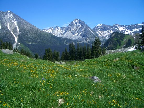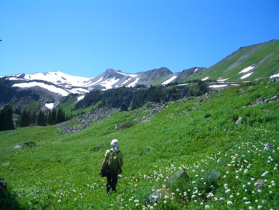 und gerade als wir uns dachten jetzt geht nichts mehr, kamen weite Wiesen mit einer wunderschoenen Blumenpracht und sanft abfallenden Huegeln in Sicht.
