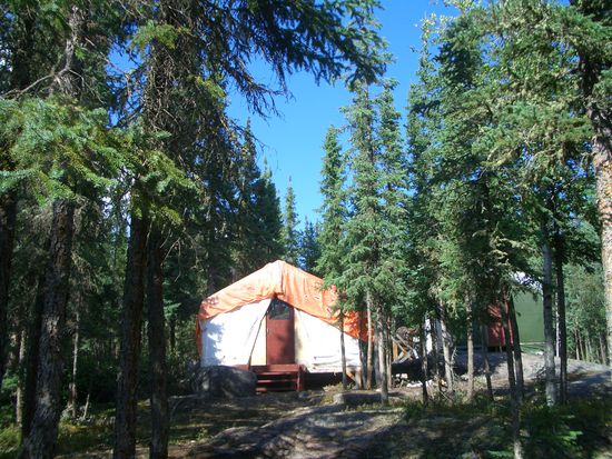 Die Blachfordlakelodge ist ein Uebernachtungs- und Konferenzzentrum. 60 km und eine halbe Stunde mit dem Wasserflugzeug von Yellowknife, am 17 km langen Blachfordlake, noerdlich des grossen Sklavensees, gelegen.