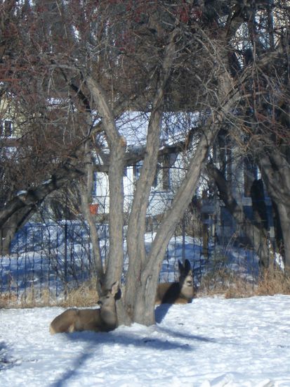 Die Rehe, die ueberall rumlaufen oder liegen.