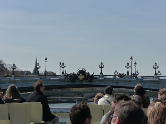Da hatten wir bei dem herrlichen Wetter absolut keine Lust dazu. Statt dessen gingen wir ans Ufer der Seine. Hier erwartete uns ein Ausflugsboot mit dem wir uns als Krönung des heutigen Tages auf zu einer Sightseeing-Fahrt auf der Seine machten. Die beste Art einer Stadtbesichtigung bei diesem frühlingshaftem Wetter und tausendmal besser, als in den Warteschlangen vor der Kathedrale auszuharren. Hier also ein paar Impressionen aus der Perspektive vom Boot: